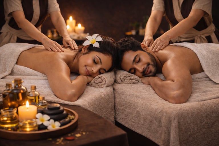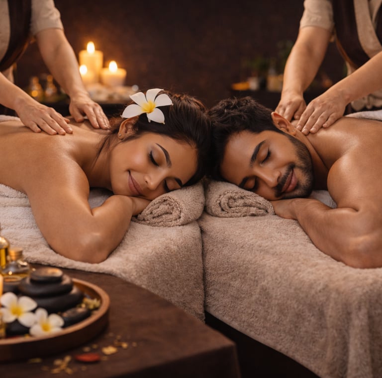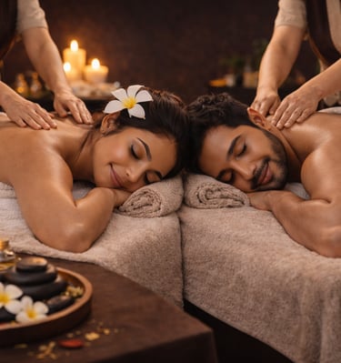 Private luxury couple rooms designed for romantic and peaceful shared experiences. Enjoy synchronized massages in a calming ambiance perfect for anniversaries, special occasions, or relaxing together in Paharganj.